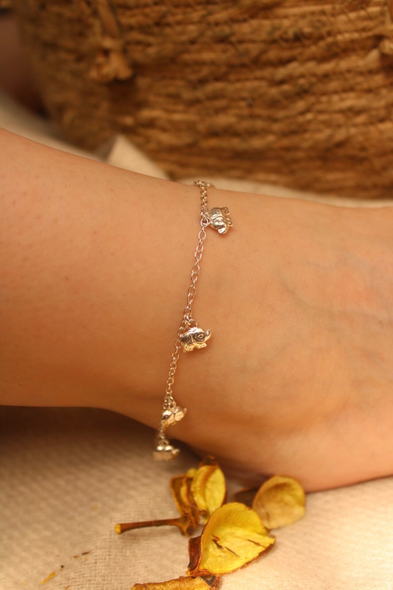 Tobillera de cadena rolo con elefantes infladas de 26 centímetros.